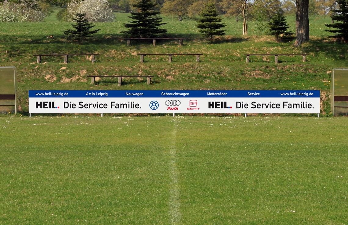 Auch für das ursprüngliche Unternehmen Heil waren wir mit unterschiedlichsten Reklame-Produktionen beauftragt, zu denen z.B. 18/1 Plakate, Großwerbeflächen, Infoleitsysteme, Planen, Fahnen, Werbebanden und Direktbeschriftungen gehörten.