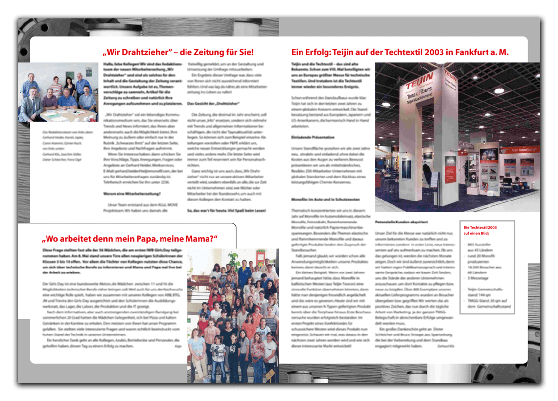 Wagler Marketing realisierte über einen Zeitraum von 3 Jahren die Mitarbeiterzeitung der TMGG. Zu unserem Aufgabenbereich gehörte sowohl die redaktionelle Betreuung als auch das Gesamtlayout und die Produktion der Zeitung.